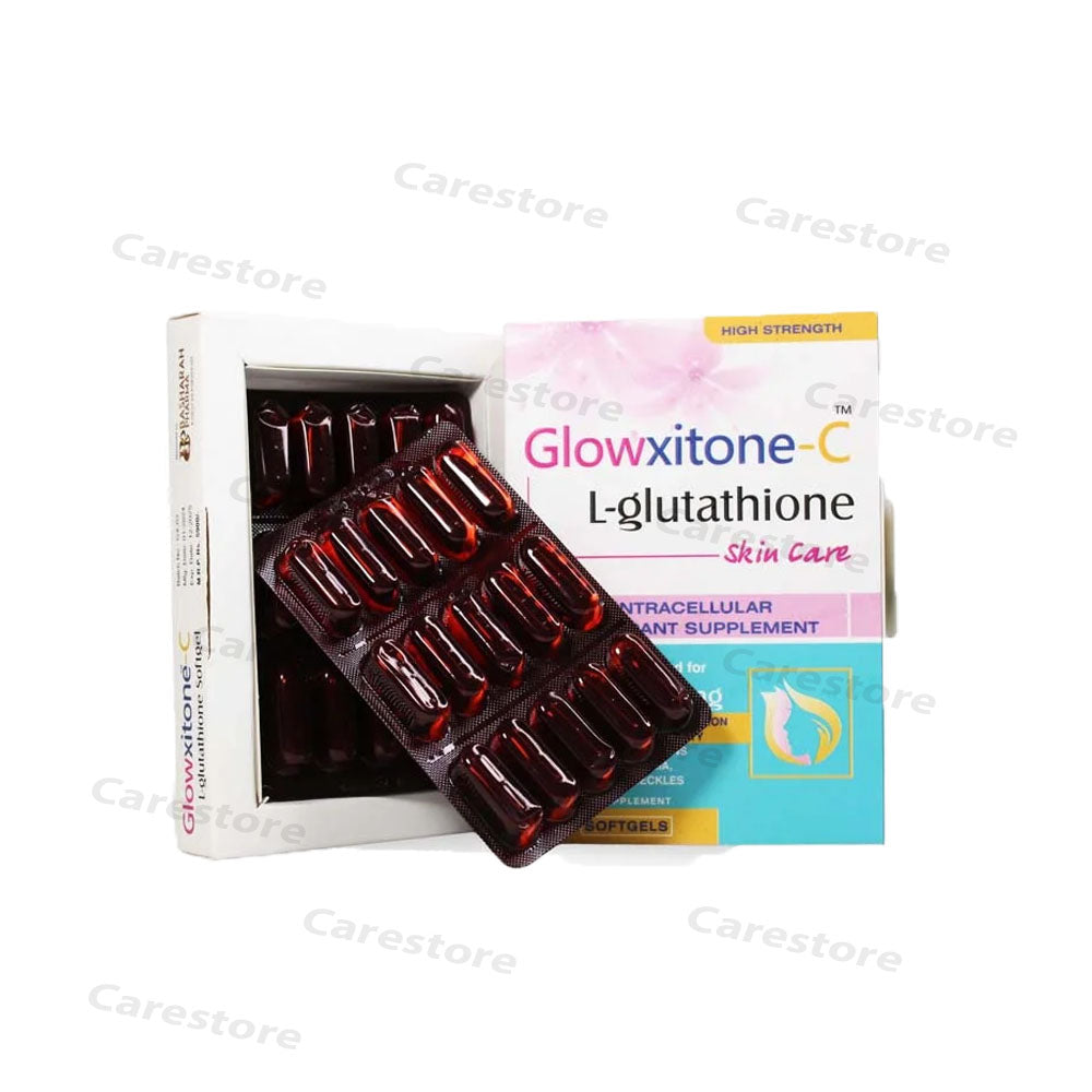 Glowxitone-C softgel an Enhanced Glutathione Supplement Renowned as the King Antioxidant due to its Detoxification Property Neutralizes Toxins, Enhanced Immune System, Prevents Skin from further Damage Aging and safe skin from Damage of Radicals as a result the Skin get a Fairer & Brighter Complexion.